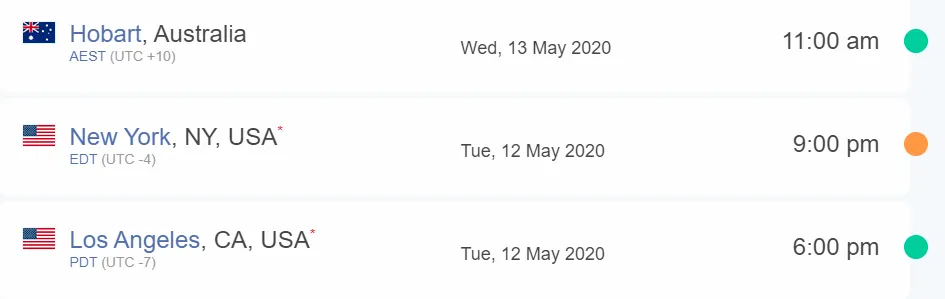 13/May/2020 @11:00 AM (Hobart, Australia, AEST)